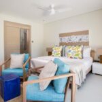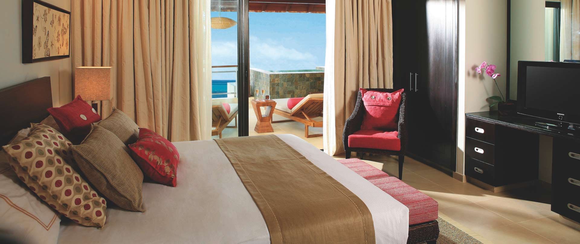 Auf einer Fläche von insgesamt 213 ha verteilen sich 98 Suiten & Villen. Die Standard Junior Suiten sind ca. 60 qm groß und ausgestattet mit kleiner Küche, Ess- und Wohnbereich, separatem Schlafzimmer, Bad/WC, Fön, Safe, Kaffeemaschine, TV, Wifi, Klimaanlage sowie Terrasse zum Garten. Wer etwas mehr Platz wünscht, kann eine 1-, 2- oder 3-Schlafzimmer Suite oder Villa buchen, die zwischen 160-290 qm groß sind und zum Teil einen eigenen Pool besitzen.