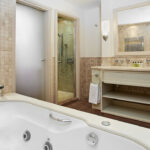 Die 56 Deluxe-Zimmer (ca. 34m²) sind sehr geschmackvoll und komfortabel eingerichtet. Alle Zimmer verfügen über Balkon oder Terrasse, Bad mit separater Dusche und Whirlpool-Badewanne, Bademantel, Bidet, Föhn, TV (Flachbildschirm), Safe, Klimaanlage, Bügeleisen und –brett, Minibar, Telefon und Internetanschluss.