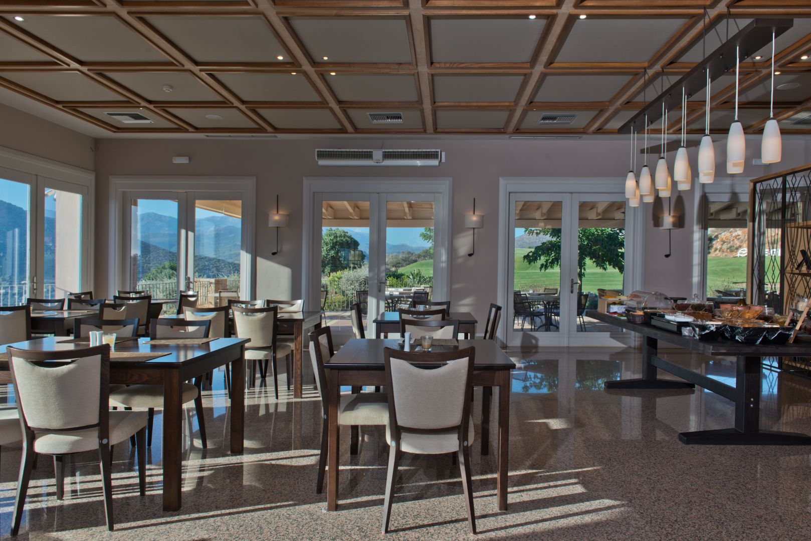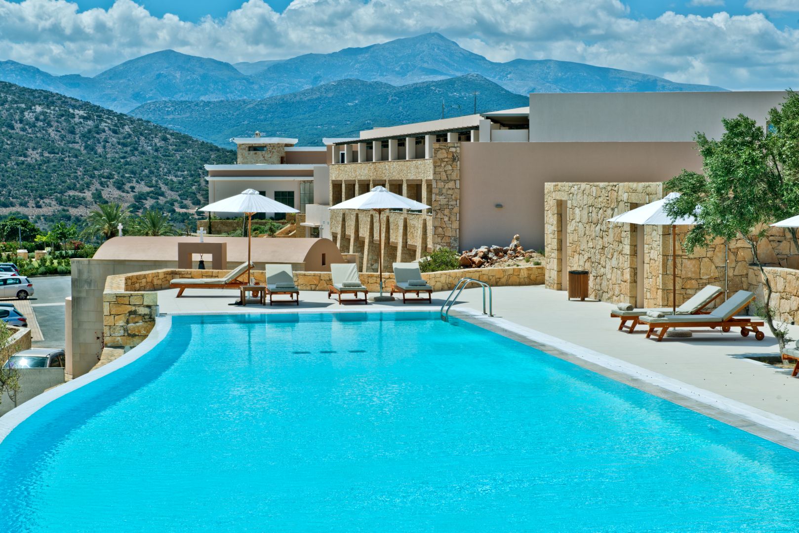 Zwischen Bergen und Meer liegt dieses kleine aber feine, 2017 eröffnete Hotel mit 25 Suiten direkt am 18-Loch-Championship-Golfplatz etwa 18 km vom Flughafen Heraklion entfernt. Das Städtchen Hersonissos erreicht man in 5 Autominuten, den nächsten Strand in etwa 15 Minuten. Im Clubhaus Restaurant nehmen Sie Ihr Frühstück ein. Außerdem können Sie sich dort mit euroäischer Küche und kretischen Spezialitäten verwöhnen lassen. Der 25 m Pool lädt zum Entspannen nach dem Golfspiel ein und ein Fitness Center mit Technogym Ausstattung rundet das Freizeitangebot ab. In den öffentlichen Bereichen gibt es kostenloses Wlan.
