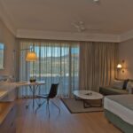 Die 23 Suiten (45m2) und 2 Executive Suiten (75m2) besitzen großzügige Balkone mit Berge/Meerblick, Marmorbadezimmer (18m2), 55‘‘Flatscreen TV und ultra highspeed Wlan. Das Hotel ist das gesamte Jahr über geöffnet.
