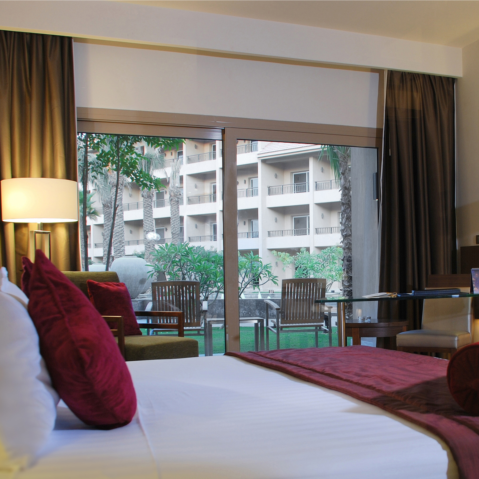 Die 449 äußerst geräumigen Zimmer & Suiten sind sehr stilvoll und modern eingerichtet. Die Standard „Deluxe-Zimmer“ sind ca. 52 qm groß und alle mit Balkon oder Terrasse ausgestattet. Die Einrichtung der Zimmer besteht aus einem voll ausgestatteten Bad mit separater Dusche und Badewanne, Föhn, Bademantel, Safe, Mini-Bar, Telefon, Satelliten-TV & Internetanschluß.