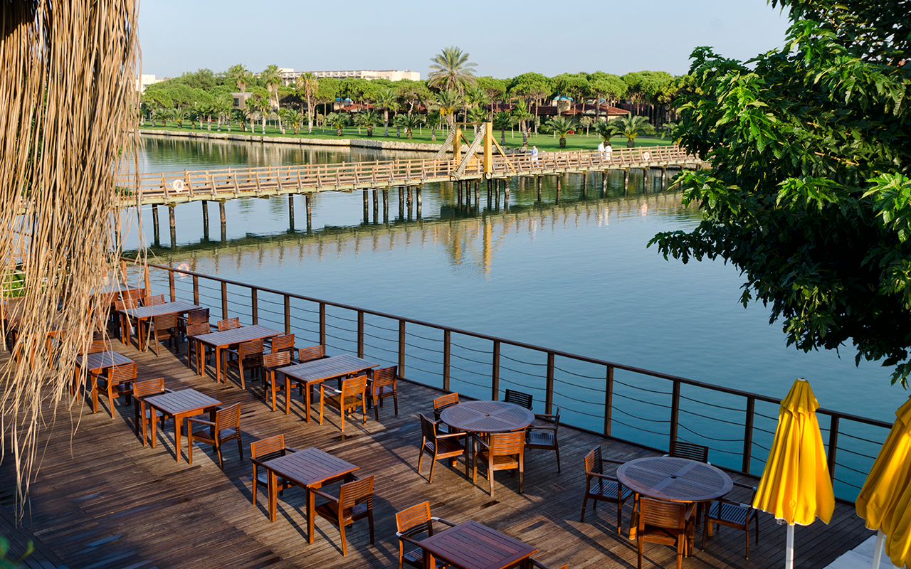 Dieses führende Hotel in Belek ist ideal für die Golfer, die eine Unterkunft in direkter Lage am Golfplatz schätzen (Gloria Golf Club, ein 18- und 9-Loch Golfplatz). Eine hoteleigene Holzbrücke führt über den Fluss Acisu zum feindsandigen Strand.