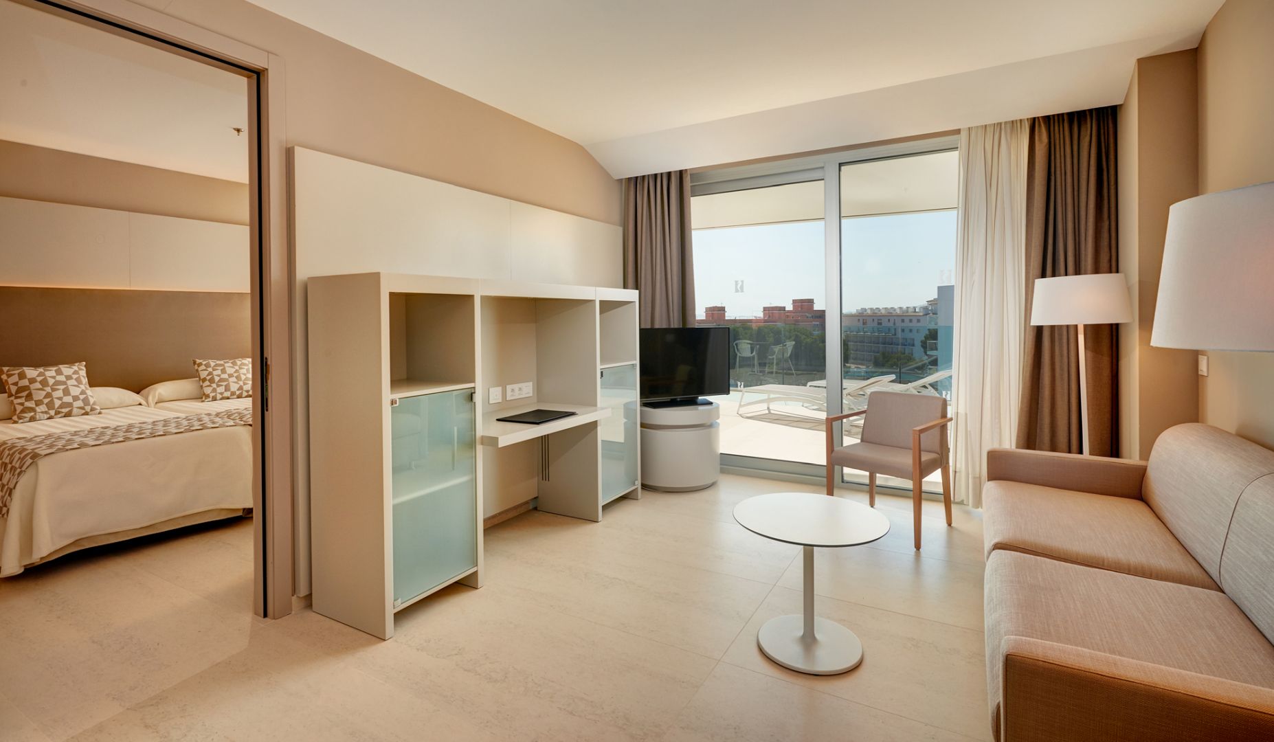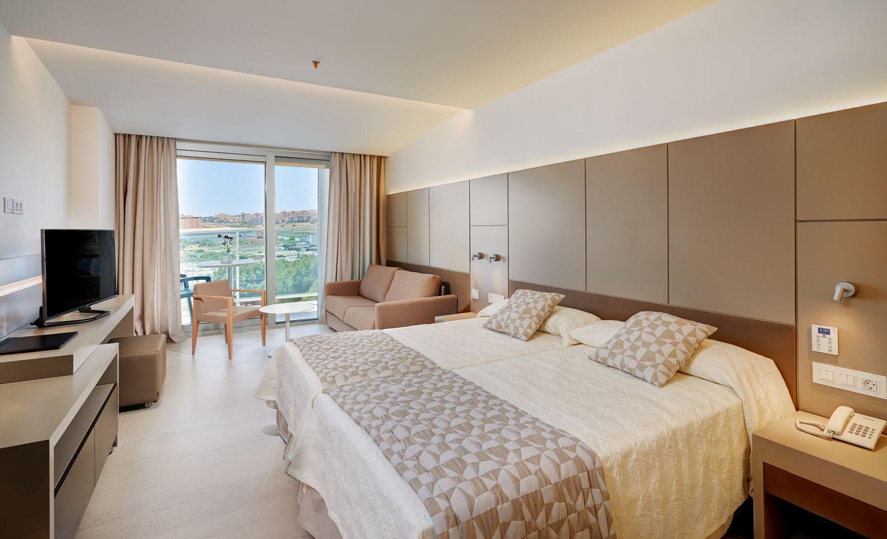 Die 368 Zimmer sind alle ausgestattet mit Bad mit Dusche, gratis WLAN, Safe (gegen Gebühr), Minibar (gegen Gebühr), Klimaanlage, SAT-Flachbildschirm-TV, Föhn, Telefon und Balkon. Je nach gebuchter Zimmerkategorie verfügen Sie über Garten-, Pool- oder Meerblick. Standard Doppelzimmer: ca. 33qm, Balkon mit Gartenblick. Doppelzimmer mit Poolblick: ca. 33qm, Balkon mit Poolblick Doppelzimmer mit Meerblick: ca. 33qm, Balkon mit Meerblick Junior Suite: ca. 38qm, separater Wohn- und Schlafbereich, Balkon. Junior Suite mit Poolblick: ca. 38qm, separater Wohn- und Schlafbereich, Balkon mit Poolblick Junior Suite mit Meerblick: ca. 38qm, separater Wohn- und Schlafbereich, Balkon mit Meerblick Suite: ca. 50qm, Wohnzimmer und separater Schlafbereich mit Kingsize Bett oder 2 Einzelbetten.