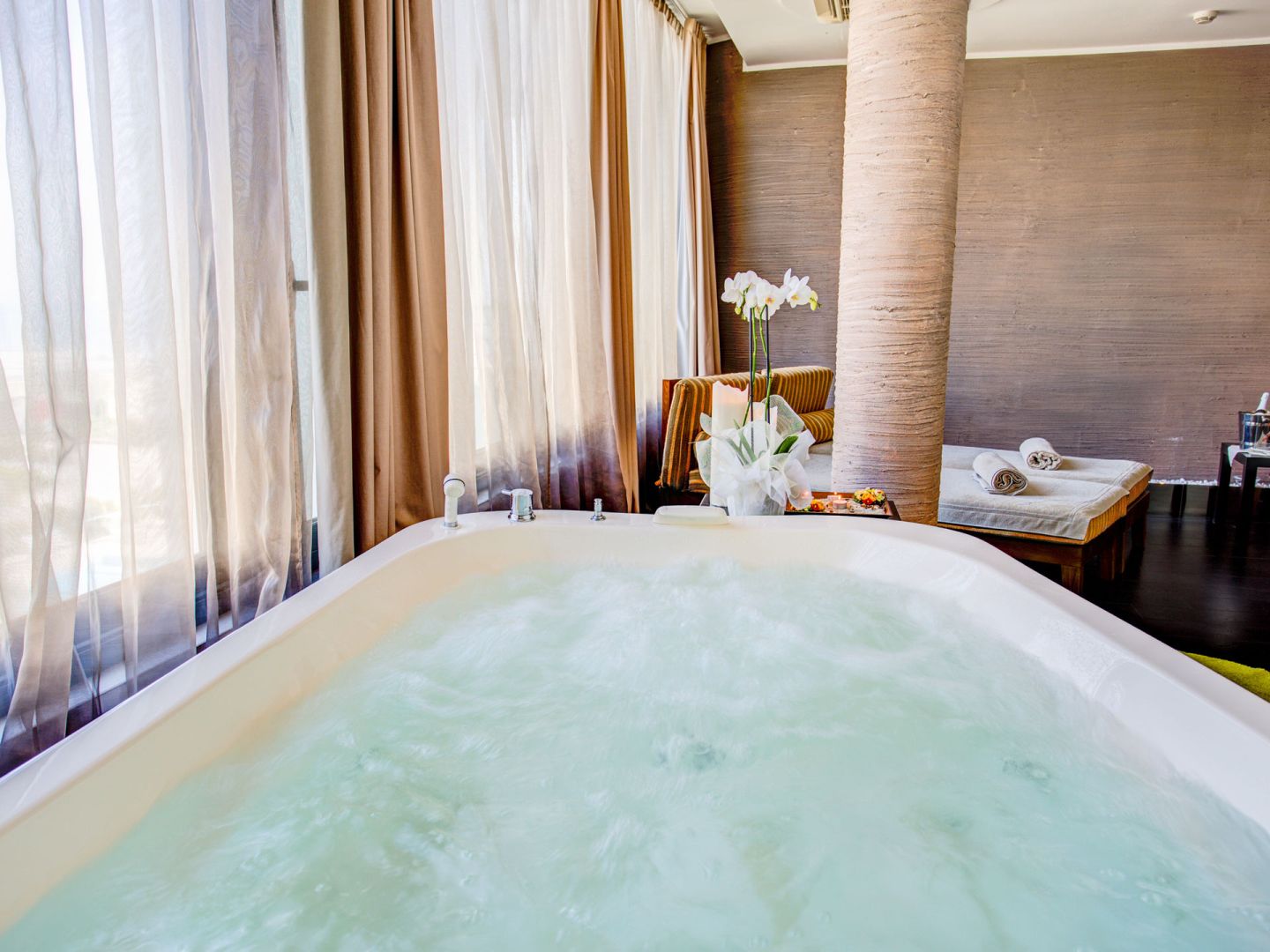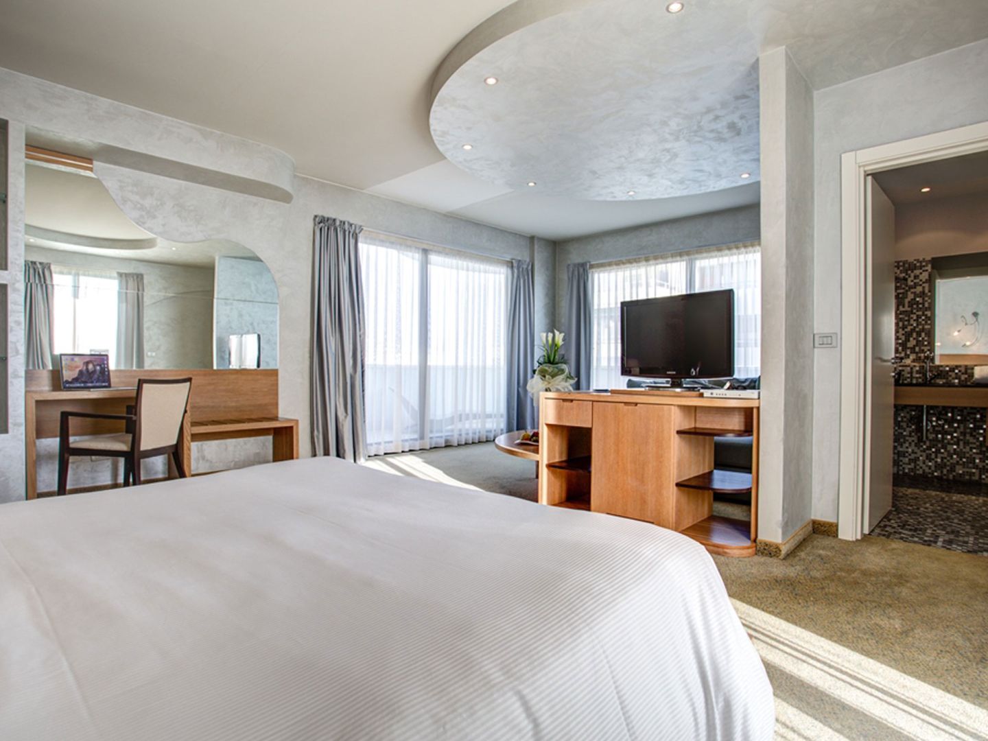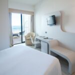 Das Hotel verfügt über 102 großzügige Zimmer mit gepflegter Einrichtung. Das einladende und funktionelle Klima der Zimmer wird durch die größtenteils geräumigen und hellen Badezimmer und die Parkettböden unterstrichen. Sie haben die Wahl zwischen verschiedenen Zimmertypen. Die Juniorsuite hat ein Schlaf- und ein Wohnzimmer, ein Badezimmer mit Whirlpool-Badewanne und eine Terrasse. Von den Deluxe-Zimmern haben Sie Blick aufs Meer und auch diese Zimmer verfügen über eine Whirlpool-Badewanne. Die Superior-Zimmer sind mit Blick auf den Pinienwald oder die Querstraße. Die Classic-Zimmer sind mit Blick auf den Innenhof des Hotels und von den gemütlichen Einzelzimmern mit französischem Bett haben Sie Ausblick auf den Pinienwald oder auf den Innenhof.