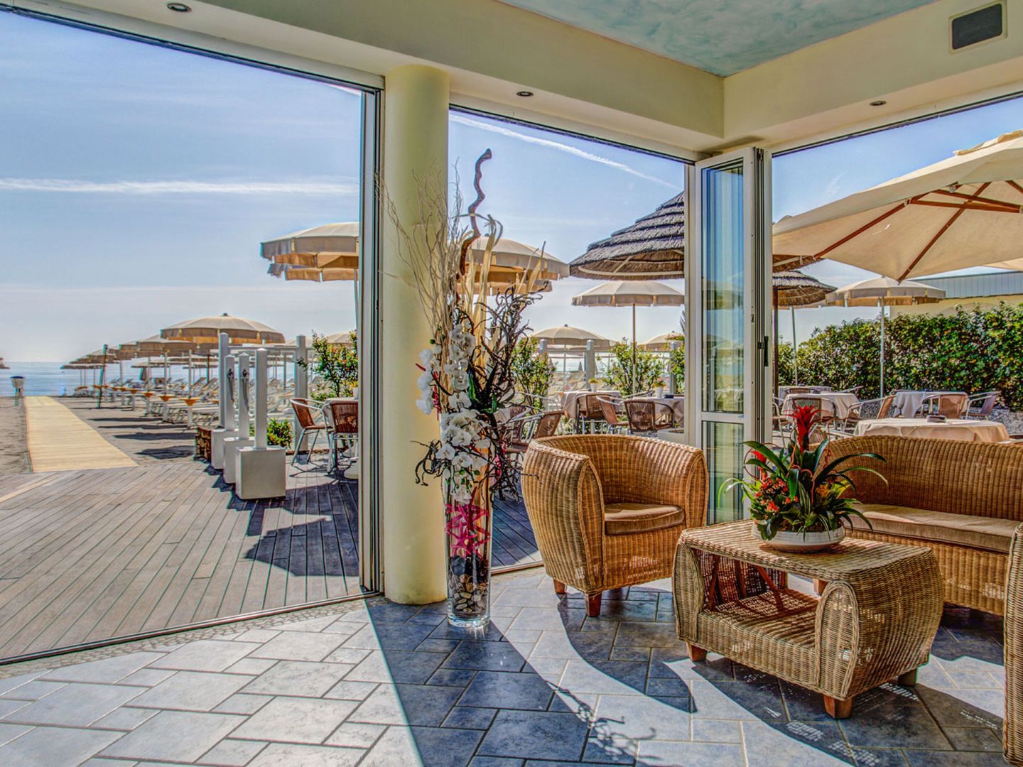 Das Hotel Le Palme liegt an der Adriaküste im eleganten Badeort Milano Marittima. Durch seine Lage direkt am Meer, nur wenige Schritte vom Ortszentrum und knapp 1.800 Meter vom Adriatic GC entfernt, ist dieses Hotel eine hervorragende Wahl für Ihre Golfreise nach Italien. Das Hotel verwöhnt Sie mit einer ausgezeichneten Küche und einem wunderschönem Spa.
