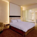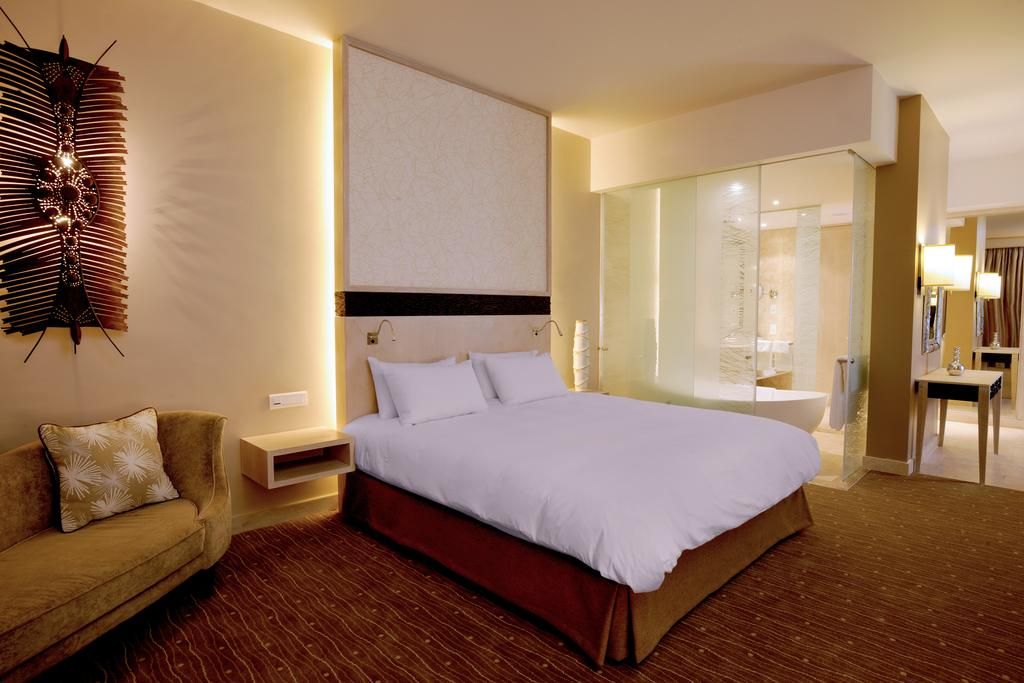 Die insgesamt 100 luxuriösen Zimmer sind mit mindestens 45m² alle sehr geräumig. Die moderne und komfortable Ausstattung der Zimmer besteht aus Balkon, Deluxe-Bad mit Dusche und separater Badewanne, großem Flachbild TV, Minibar, Telefon, Safe, WLAN und individuell regulierbarer Klimaanlage.