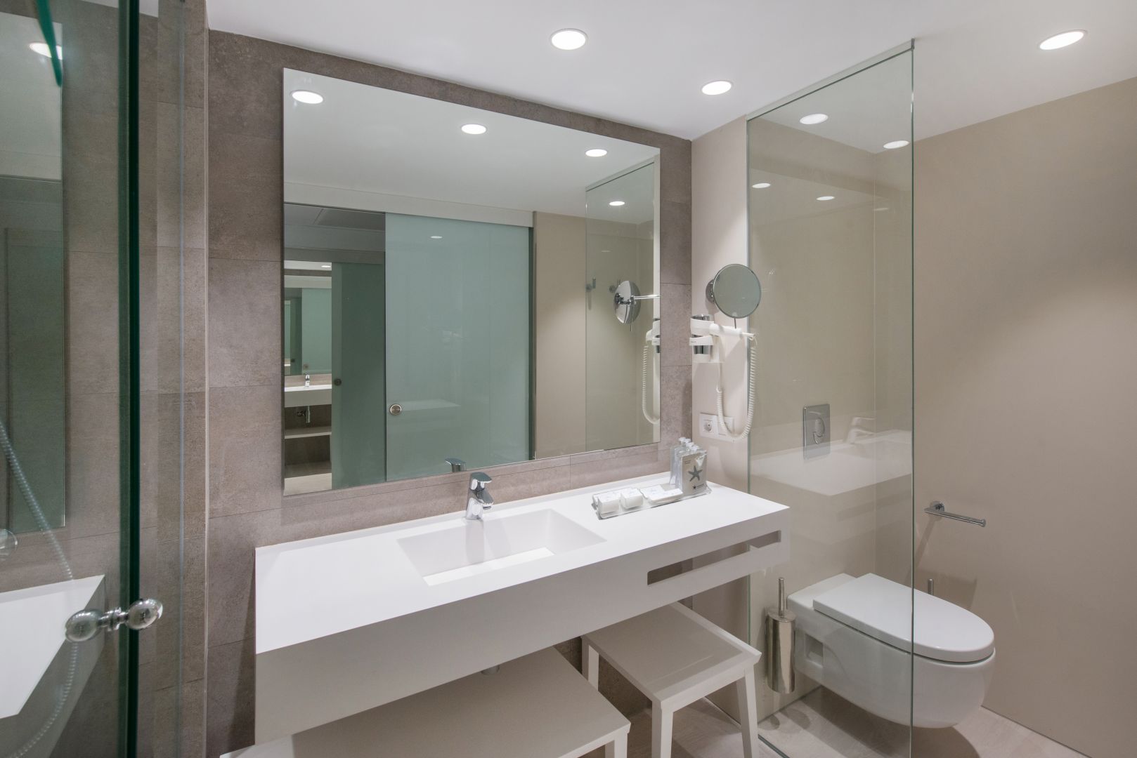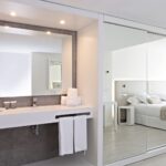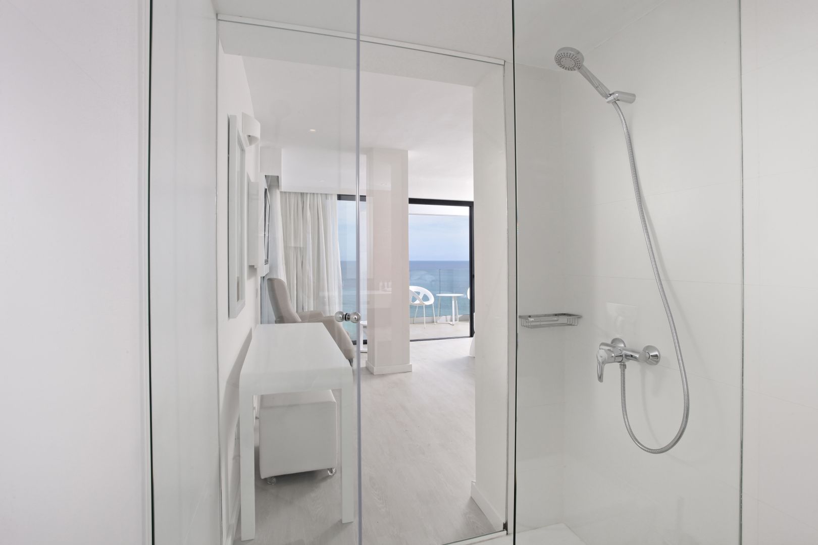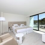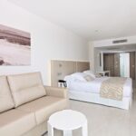 Die 171 Zimmer besitzen entweder eine Terrasse oder einen Balkon. Die Hotelzimmer sind alle mit kostenfreien WIFI, einem Schreibtisch, einer Klimaanlage, Bad mit Dusche, Föhn,32“ Sat –TV, Minibar (auf Anfrage und gegen Aufpreis) und einem kostenpflichtigen Safe ausgestattet. Standard Doppelzimmer: Zwei Einzelbetten, ca. 22qm groß. Standard Doppelzimmer mit Gartenblick: Zwei Einzelbetten, ca. 22qm, Terrasse oder Balkon mit schönem Gartenblick. Standard Doppelzimmer mit seitlichem Meerblick: Zwei Einzelbetten, Terrase oder Balkon mit seitlichem Meerblick. Standard Doppelzimmer mit Meerblick:2 Einzelbetten, ca. 24qm groß, Terrase oder Balkon mit direktem Meerblick. Junior Suite: 2 Einzelbetten, ca. 40qm groß, Wohnzimmer, Nespresso Kaffemaschine, Terrasse.