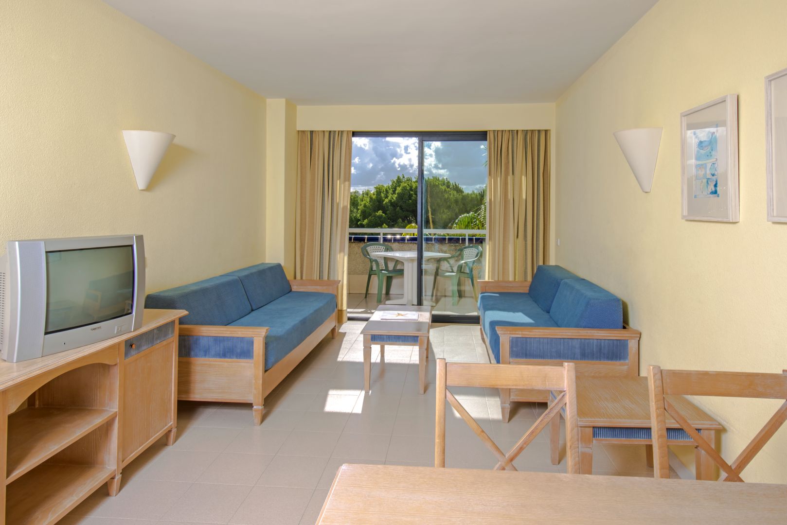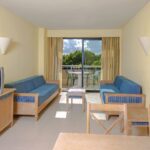 Die 405 Zimmer bieten alle einen Blick auf den Garten- oder den Poolbereich und besitzen endweder eine Terrasse oder einen Balkon. Die Hotelzimmer sind alle mit kostenfreien WIFI, einem Schreibtisch, einer Klimaanlage, Bad mit Dusche, Föhn, 32“ Sat –TV, Minibar (auf Anfrage und gegen Aufpreis) und einem kostenpflichtigen Safe ausgestattet. Standard Doppelzimmer: Zwei Einzelbetten, ca. 23qm groß. Standard Doppelzimmer mit Gartenblick: Zwei Einzelbetten, ca. 23qm und ein schöner Gartenblick. Standard Doppelzimmer mit Poolblick: Doppelbett, ca. 23qm, guter Blick auf den Swimmingpool. Dreibettzimmer: Zwei Einzelbetten und ein Bettsofa, 45qm, Terrasse Superior Dreibetttzimmer. Zwei Einzelbetten ein ein Bettsofa, 35qm, Gartenblick Familienzimmer: separates Schlafzimmer mit 2 Einzelbetten, Wohnraum mit Bettsofa, 48qm, Esstisch, Mikrowelle, Balkon Suite: Die Suite besteht aus einem Schlafzimmer mit Doppelbett und einem Wohnraum, die Zimmergröße beträgt ca. 48qm. Sie befindet sich in einem der obersten Stockwerge und besitzt eine Terrasse