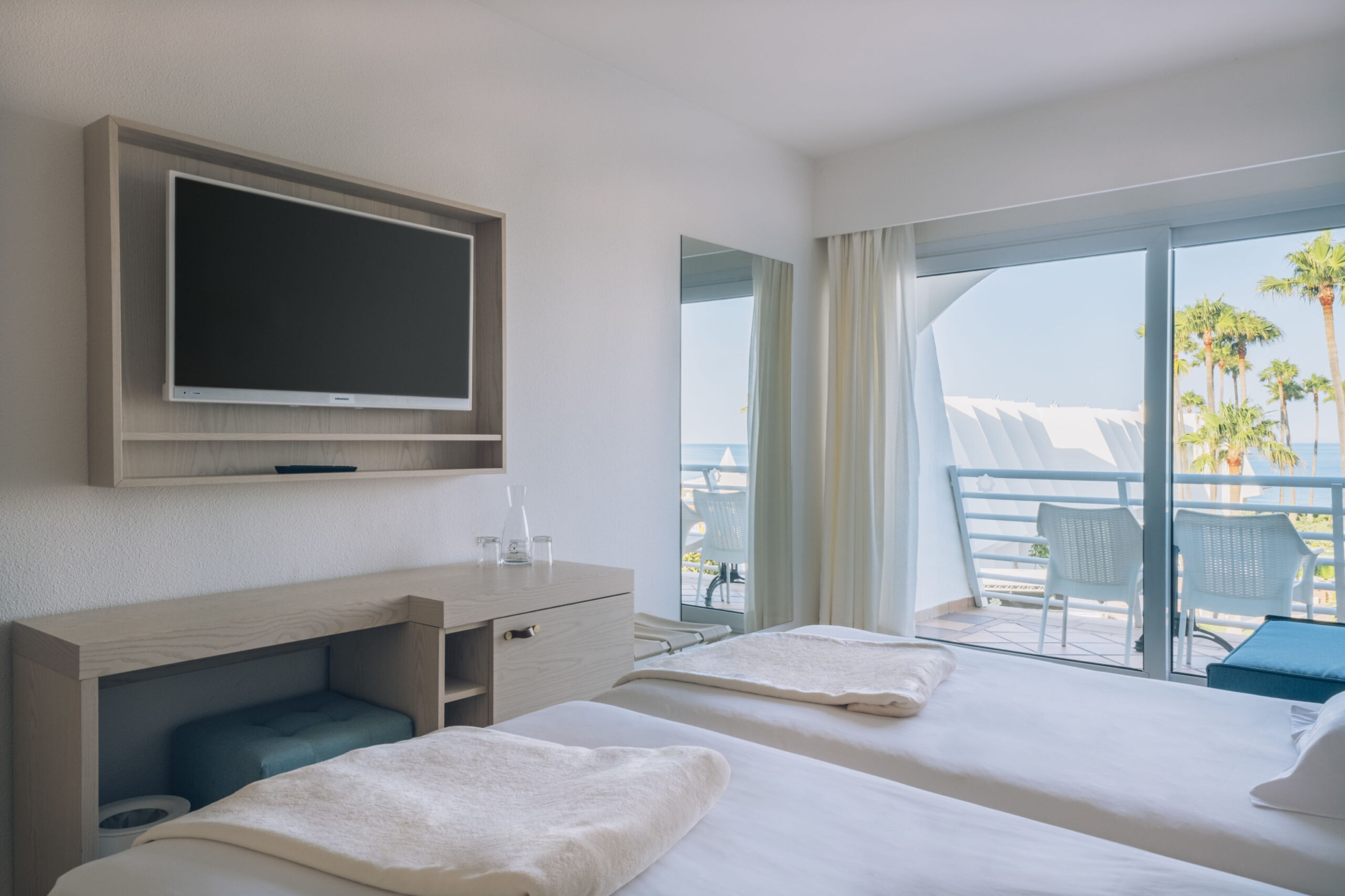 Die 348 geräumigen und sehr komfortabel ausgestatteten Zimmer im andalusischen Stil verfügen alle über Bad/WC, Bademantel, Klimaanlage/Heizung, Radio, SAT-TV, Telefon, Minibar sowie Balkon oder Terrasse jeweils mit Blick auf Golfplatz oder Meer.