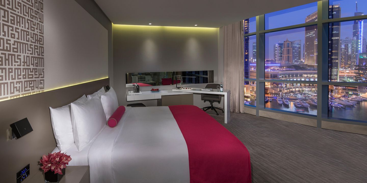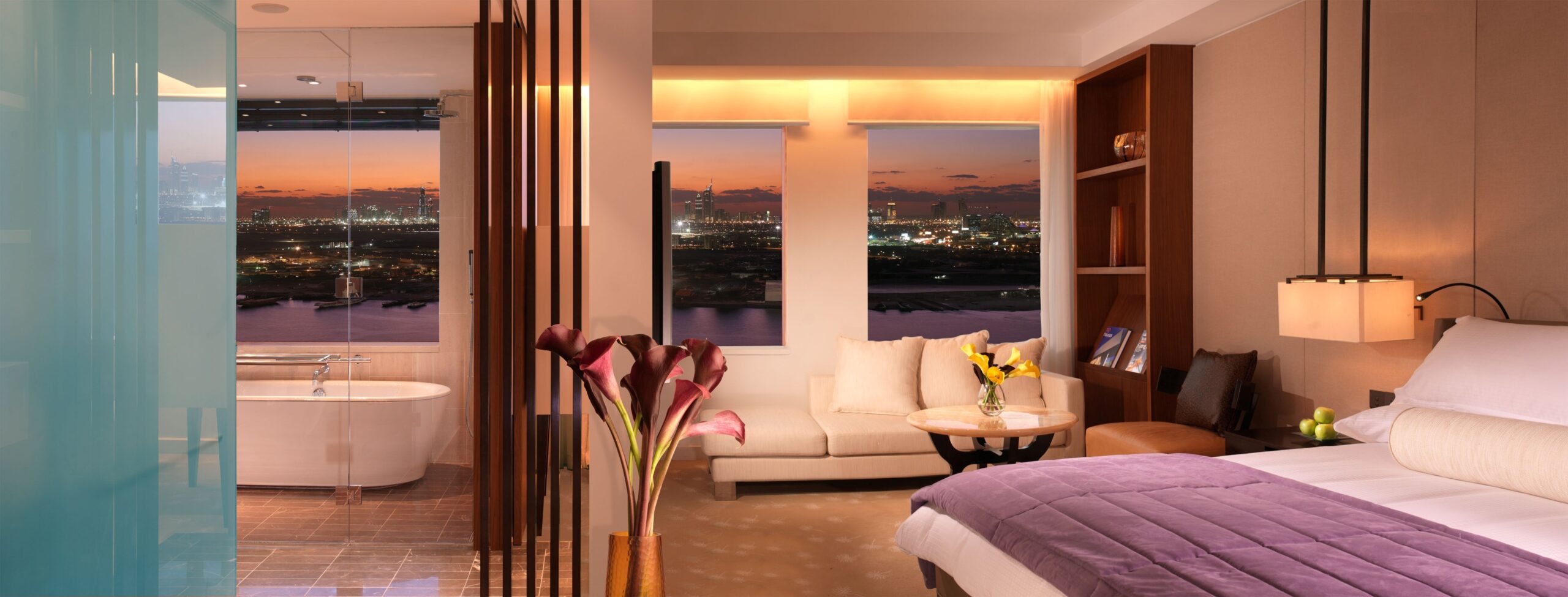 Die insgesamt 498 Zimmer und Suiten des Hotels sind modern und erstklassig ausgestattet und mit mindestens 45 qm sehr geräumig. Zur Ausstattung aller Zimmer gehören Bad, Dusche, Bidet, Föhn, Bademantel, Telefon, Satelliten-TV mit Flachbildschirm, CD-/ DVD-Player, iPod®-Dockingstation, Internet-Zugang, Tee-/ Kaffeekochgelegenheit, Bügeleisen/-brett, Hosenpresse, Safe, Minibar & Klimaanlage. Gegen einen moderaten Aufpreis bekommen Sie ein Zimmer mit wunderschönem Blick über den Dubai Creek auf die Skyline von Dubai.