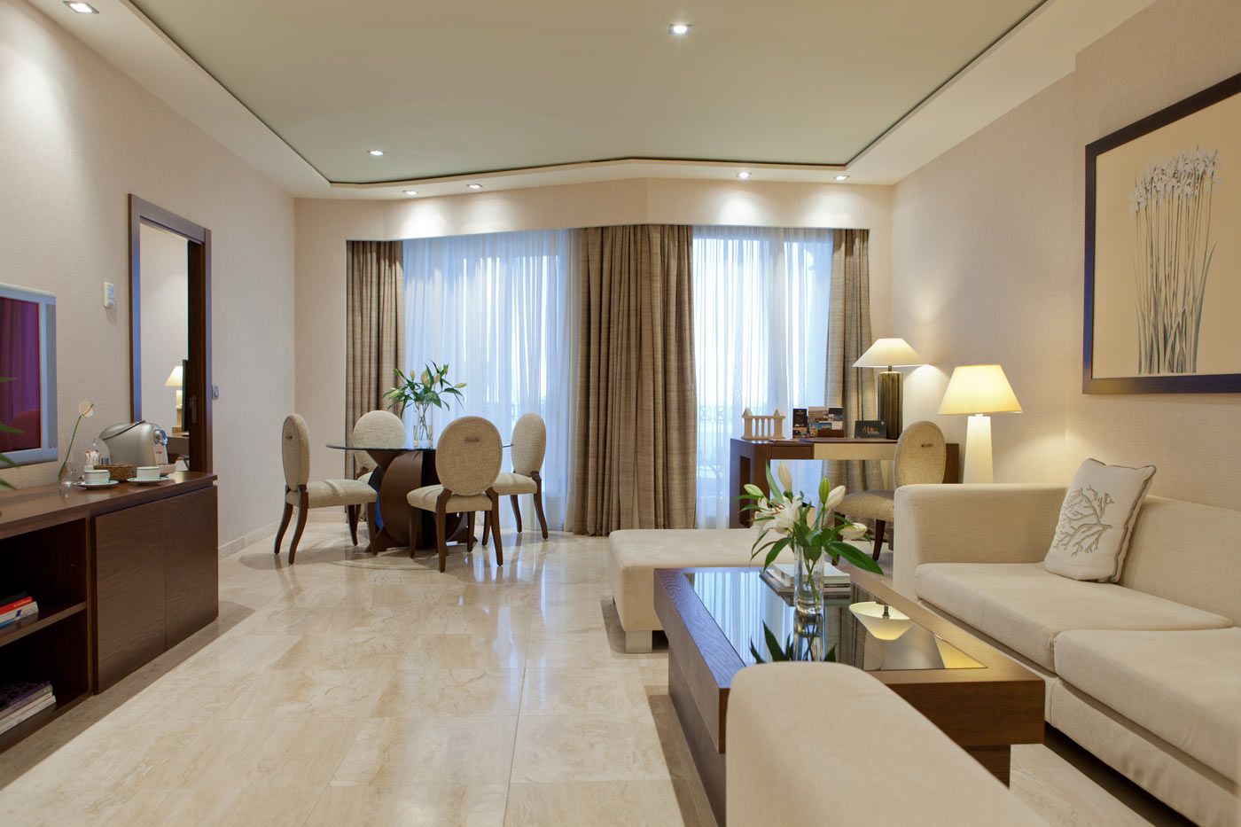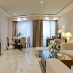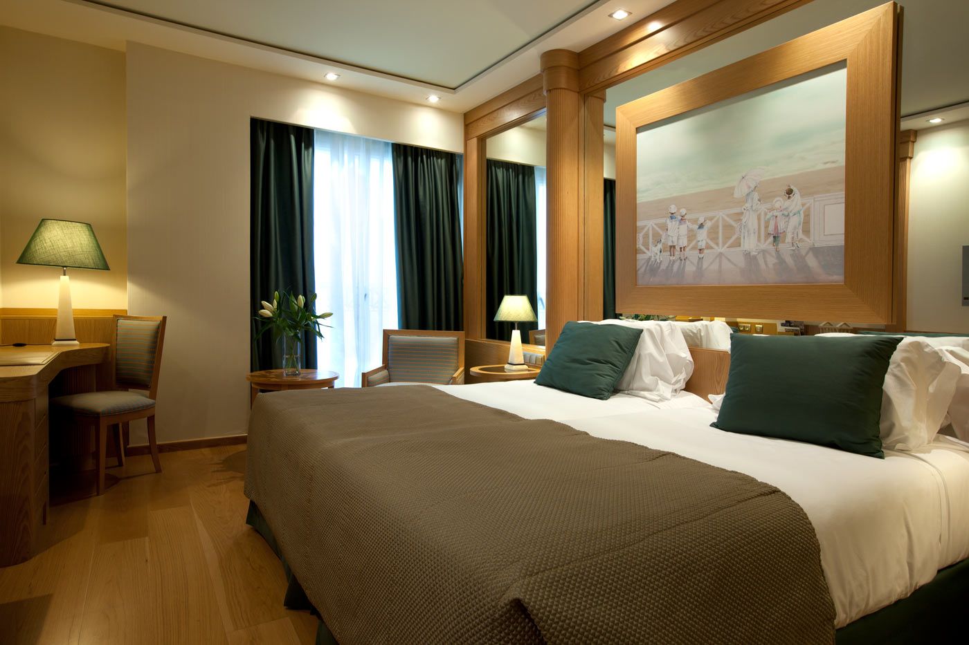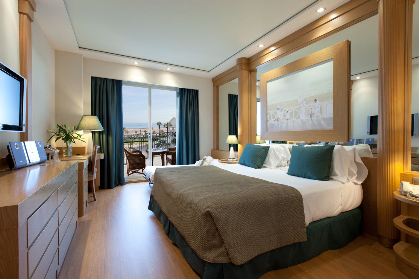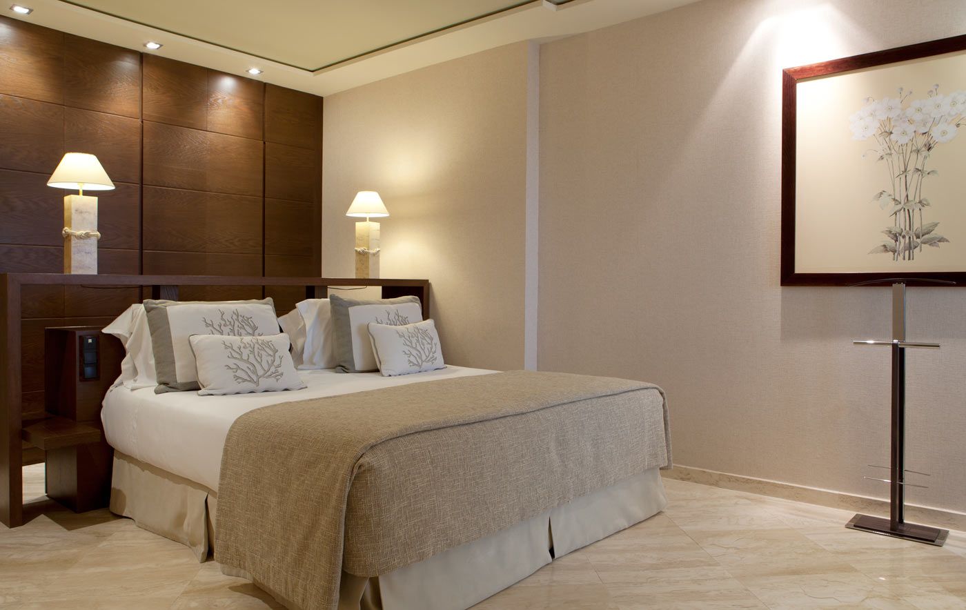 Das Hotel verfügt über 253 Zimmer, darunter 108 Classic-Zimmer (ca. 28m²) mit Blick auf die Stadt, 105 De Luxe-Zimmer (ca. 38m²) mit Meerblick, 30 Executive-Zimmer (ca. 38m², obere Etagen) mit Meerblick, acht Mare Nostrum-Suiten (ca. 70m²) und zwei Präsidentensuiten (ca. 110m²). Alle Zimmer bieten Doppelbett oder zwei Betten, separate und individuell regulierbare Heizung oder Klimaanlage, einen komfortablen und großen Schreibtisch, einen 32-Zoll-LCD-TV mit interaktivem Fernsehen und Satellitenfernsehen, Telefon, kostenlose Internetverbindung per WLAN und ADSL-Internet per Kabel, Safe, Auswahl an Kopfkissen, Pay TV und Video-on-demand, Musikanlage mit CD-Player und Radio, Badezimmer ausgestattet mit Badewanne und separater Duschkabine mit Massagedusche, komfortablen Bademänteln und Hausschuhen sowie Fön.
