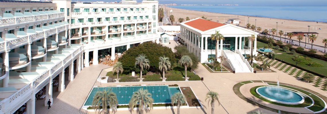 Das Wellnesshotel Las Arenas Balneario Resort ist ein exklusives 5-Sterne-Hotel der Kategorie „Gran Lujo“ und zeichnet sich zudem noch durch seine direkte Lage am Strand von Valencia aus. Das ehemalige Thermalbad wurde 1898 zu einem fantastischen Hotel umgebaut und hat die architektonische Schönheit des historischen Gebäudes bewahrt. Die Uferpromenade mit zahlreichen Restaurants und Bars sowie der Hafen liegen nur einen kurzen Spaziergang vom Hotel entfernt. Auch das lebendige Stadtzentrum (Fahrtzeit ca. 10-15 Minuten) mit seiner historischen Altstadt, der vielfältigen Kunst und Architektur lädt zu einer Erkundungstour ein. Der Flughafen von Valencia ist ca. 15 Kilometer vom Hotelgebäude entfernt.