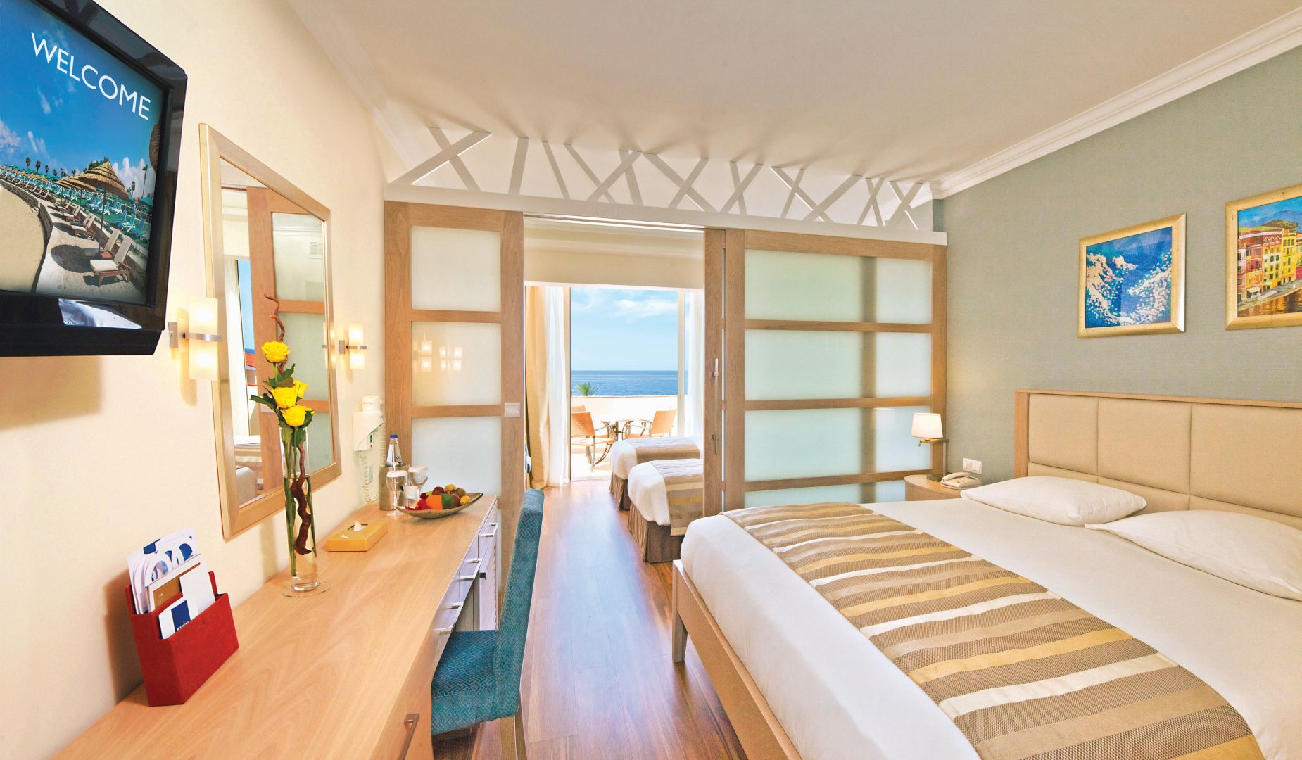Die Superior Zimmer mit seitlichem Meerblick oder aber Meer-/Poolblick sind geräumiger und liegen im exklusiven Flügen, welcher Erwachsenen ab 18 Jahren vorbehalten ist.