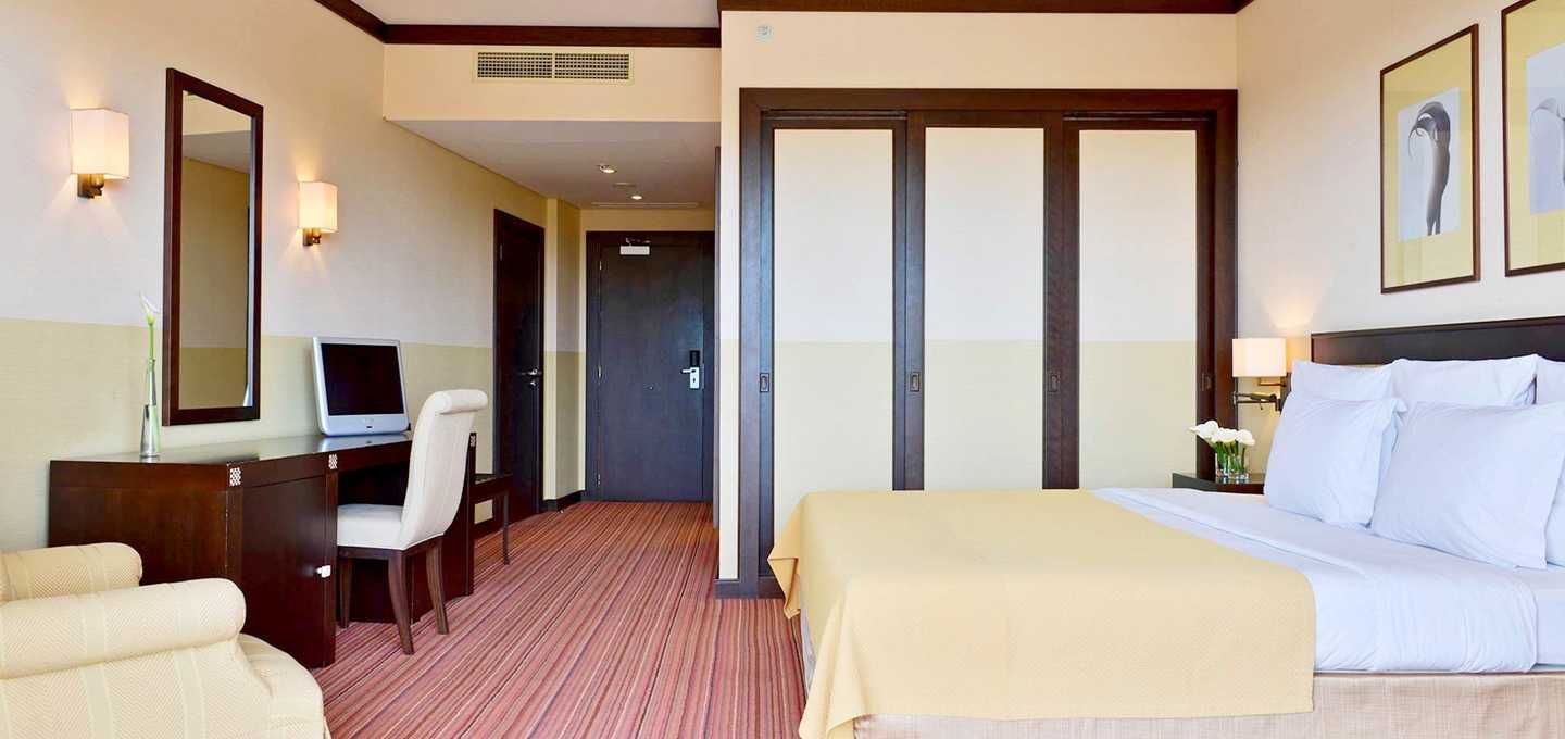 Das Hotel bietet außerhalb des Hauptgebäudes Standardzimmer (geschmackvoll und komfortabel ausgestattet mit Terrasse, Klimaanlage, Sat-TV und Minibar), Deluxe Garden Zimmer mit Terrasse und möglichen Extrabett, ideal für Familien mit 1 Kind (max. 12 Jahre alt) sowie Garden Suites im Portugiesischen Styl mit Terrasse, 2 Einzelbetten und einem Doppelbett für 3 Erwachsene oder 2 Erwachsene mit 2 Kindern. Diese Zimmer und Suiten sind alle im Erdgeschoss. Im Hauptgebäude befinden sich Zimmer der Kategorie Deluxe Golf im ersten und zweiten Stock mit Balkon, ganz in der Nähe der Driving Range.