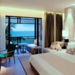 Die 277 elegant & modern eingerichteten Zimmer, Villen und Poolvillen verteilen sich in einer weitläufigen Anlage, die von tropischer Natur umgeben ist. WLAN ist in der gesamten Anlage gratis verfügbar. Die Deluxe-Zimmer (ca. 46m²) befinden sich in Gebäuden mit 1-2 Stockwerken und verfügen über Bad, separate Dusche, WC, Föhn, Klimaanlage, Safe, Minibar, Kaffee-/Teezubereiter, Telefon, Flachbild-TV (DW), iPod-Dockingstation und Balkon. Vergleichbar ausgestattet, jedoch etwas geräumiger sind die Grand Deluxe-Zimmer (ca. 55m²). Gegen Aufpreis ist bei beiden Zimmertypen Meerblick buchbar.
