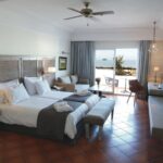 Die 233 Zimmer sind geschmackvoll in warmen, hellen Farben gehalten, (Doppelzimmer 40 qm), sie sind mit Bad, Bidet, sep. Toilette, Föhn, Telefon, SAT-TV, Mietsafe, Minibar und Klimaanlage/Heizung ausgestattet. Die Standard-Doppelzimmer haben Balkon oder Terrasse aber keinen Meerblick (Einzelzimmer ohne Terrasse/Balkon). Zimmer mit seitlichem Meerblick kosten einen kleinen Aufpreis.