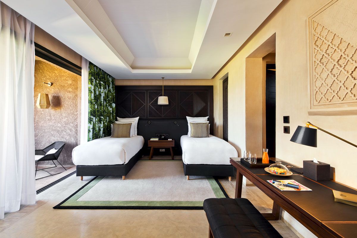 Das Hotel verfügt über 134 exquisite Zimmer und Villen mit Blick auf das Atlasgebirge und den Golfplatz. Alle Zimmer sind geräumig und freundlich gestaltet und verfügen über Bad mit Badewanne und Dusche, separates WC, Föhn, Bademantel, Slippers, Telefon, LCD-Satelliten-TV, Minibar, Safe, Klimaanlage, WLAN sowie Tee- und Kaffeekochgelegenheit.