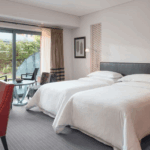 Die insgesamt 156 Deluxe Zimmer (ca. 40 qm), Deluxe Suiten (ca. 60 qm), 2-Schlafzimmer Suiten (ca. 120 qm) und 3-Schlafzimmer-Suiten (ca. 200 qm) sind elegant-modern gestaltet und mit hochwertigen Materialien ausgestattet. Sie verfügen über jeweils Klimaanlage, Bad /Dusche mit WC, Föhn, Bademantel/-schuhe, Satelliten-TV, WLAN, Safe, einer Kitchenette bzw. Küche, Balkon oder Terrasse.