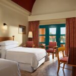 Das 5* Sheraton Miramar Resort El Gouna erstreckt sich über neun Inseln im Roten Meer mit einem hoteleigenen, von Lagunen umgebenen Sandstrand, vielen Brücken und gepflegten Gärten. Die einzigartige Lage verleiht dem Resort ein ganz besonderes Flair. Die preisgekrönte Architektur wurde vom weltberühmten Architekten Michael Graves entworfen und orientiert sich an alten ägyptischen Gebäuden.