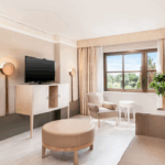Senior Suite: Zimmergröße ca. 39 qm, separater Wohn-und Schlafbereich, Wi-Fi kostenlos, kostenlose Nutzung des Fitnessstudios, Gartenblick, für 3 Gäste geeignet.