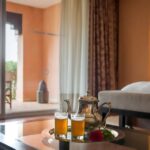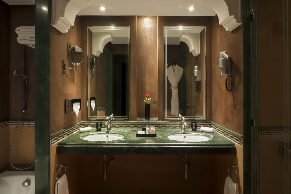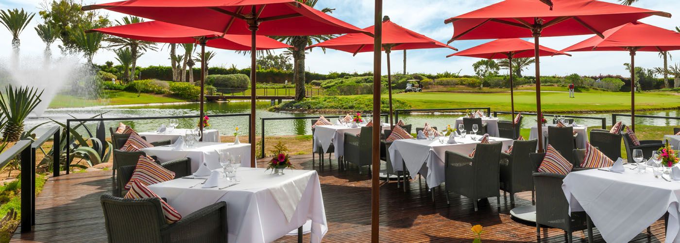 Dieses 5-Sterne Haus verführt Sie mit seiner Verbindung von marokkanischen Stilelementen mit modernem Komfort zum Träumen. Das im maurischen Stil gehaltene Hotel bietet Ihnen ein Restaurant und eine Lounge Bar sowie eine Terrasse mit Blick auf den Golfplatz und die Seen zum Entspannen. WIFI (ohne Gebühr) am Pool und in der Empfangshalle. 2 Etagen. In der Gartenanlage befindet sich ein schöner Swimmingpool. Badetücher, Liegen und Sonnenschirme stehen Ihnen am Pool ohne Gebühr zur Verfügung.