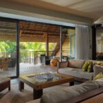 Die Anlage besteht aus eleganten, halbmondförmig angelegten Suiten im Chalet-Stil sowie einem kleinen Dorf von 27 exklusiven Privatvillen. Letztere verfügen alle über einen eigenem Pool während sich mehrere Chalets jeweils einen größeren Pool (ca. 26 qm) teilen. Zudem gibt es einen großen Süßwasserpool und ein seperates Kinderbecken. Das Hauptrestaurant und mehrere A-la-Carte Restaurants laden zu einer kulinarischen Reise, von Mauritius bis nach Asien und Europa ein. Die unvergesslichen Sonnenuntergänge geniesst man am besten mit einem raffinierten Cocktail in der Caravelle Bar.