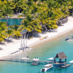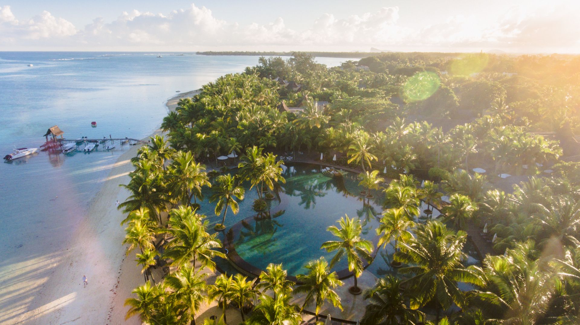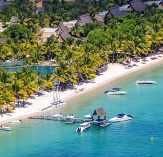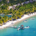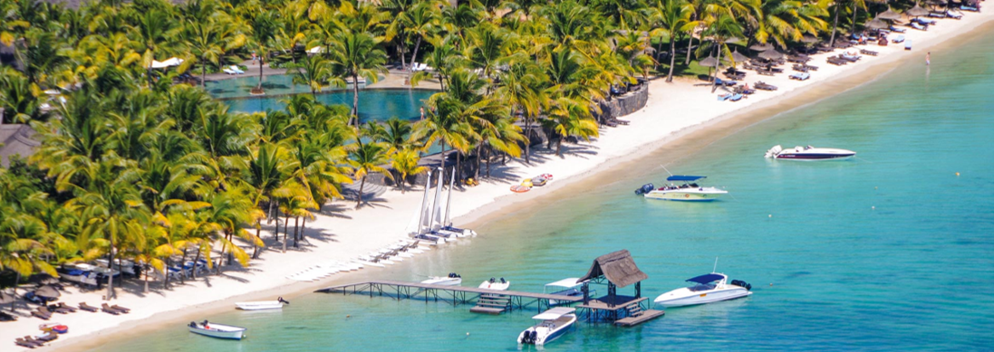 Dieser Luxus Resort erstreckt sich über 35-Hektar tropischer Gärten und türkisblauen Lagunen an einem der schönsten Strände an der Nordwestküste der Insel, etwa 70 km entfernt vom Flughafen Mahébourg.