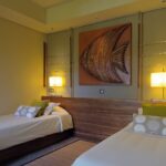 Bei der Unterbringung haben Sie die Wahl zwischen Juniorsuiten (ca. 63 qm, Pool- oder Gartenseite), Tropical-Junior-Suiten (ca. 70 qm, zusätz. Außendusche), Familiensuiten (ca. 94 qm, zusätz. Kinderschlafzimmer, Bad für Kinder, z.T. mit Außendusche), Beachfront-Pool-Suiten (ca. 102 qm am Strand, privater Pool, mit Terrasse und Meerblick, eingeschränkt durch Vegetation) und Beachfront-Senior-Poolsuiten (ca. 163 qm, 1. Etage, zur Meerseite, eigener Pool). Wenn Sie das Golfpaket buchen, erfolgt die Unterbringung in der Golf Suite (Tropical Junior Suite, ca. 70 qm, zusätz. Außendusche).