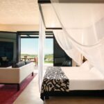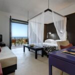 Die 203 Zimmer und Suiten sind alle großzügig geschnitten und in warmen Erdtönen sowie mit naturbelassenen Materialien und Stoffen gestaltet. Alle Zimmer bieten Blick über das Meer, eine private möblierte Terrasse oder Balkon und sind ausgestattet mit Kingsize-Himmelbett, Bad mit separater Dusche, Bademantel, Föhn, Telefon, Satelliten-TV (Flachbildschirm), WLAN (ohne Gebühr), Schreibtisch, Minibar, Safe und Klimaanlage. Die Deluxe Zimmer (alle im ersten Stock gelegen) und Superior Deluxe Zimmer (alle im Erdgeschoss gelegen) sind ca. 41-45qm groß.